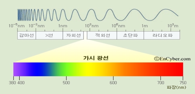 우리는 저 전자기파의 아주 작은 범위만 인식할 수 있다. 그 범위를 가시광선이라 부른다.